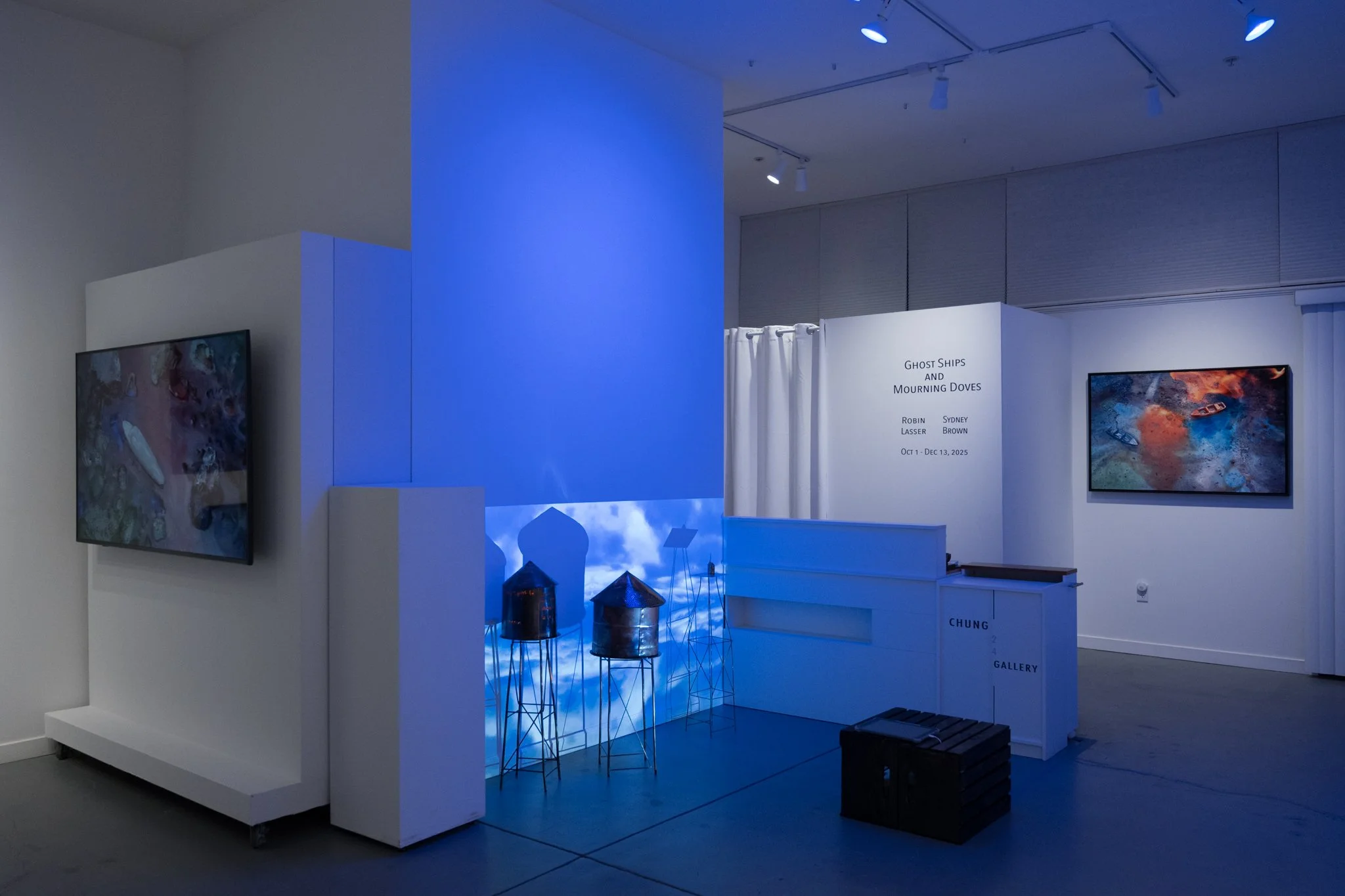 Get your copy of "Ghost Ships and Mourning Doves," this content-rich, hardcover companion book to our upcoming exhibition is beautifully designed with images of artworks in the show and beyond. Additionally, it contains essays from Terri Cohn, independent curator, writer, and art historian, Alena Sauzade, PhD, Gallery Director and Collections Manager at San José State University, & Diane Chung, gallerist, as well as the artists’ statements on this project. You'll also gain access, through QR codes, to video clips from Lasser's body of multi-media work.