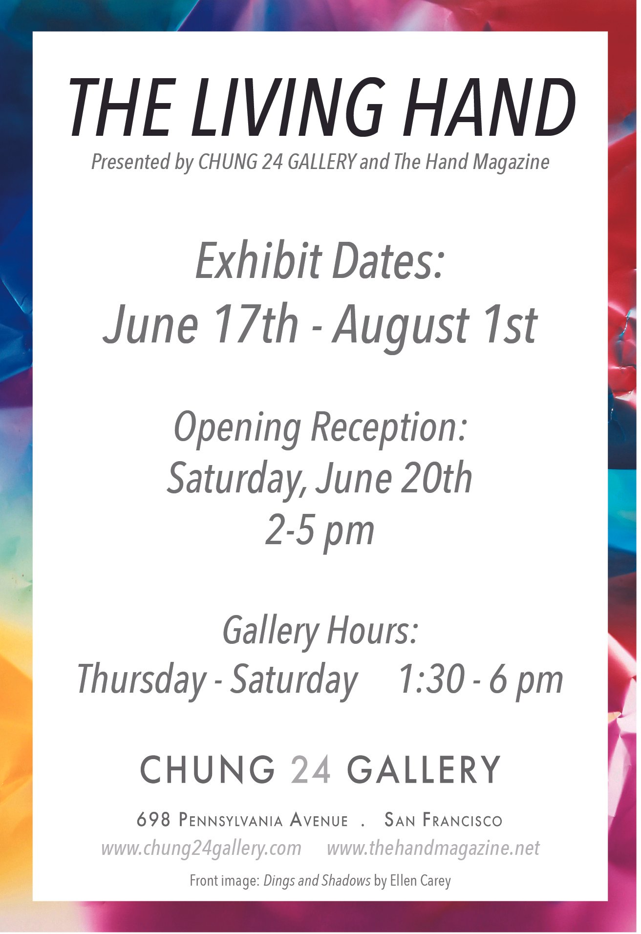 UPCOMING The Living Hand a group exhibition in collaboration with The Hand Magazine June 17 - August 1, 2026 OPENING RECEPTION Saturday . June 20, 2026 2 - 5pm OPENING RECEPTION Saturday . June 20, 2026 2 - 5pm OPENING RECEPTION Saturday . June 20, 2026 2 - 5pm
